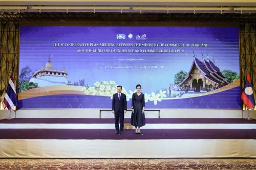 นางศุภจี สุธรรมพันธุ์ รัฐมนตรีว่าการกระทรวงพาณิชย์ จัดประชุมแผนความร่วมมือกระทรวงพาณิชย์ไทย-สปป.ลาว ครั้งที่ 8 เมื่อวันที่ 17 ธันวาคม 2568 ณ กรุงเทพฯ ร่วมกับนายมะไลทอง กมมะสิด รัฐมนตรีว่าการกระทรวงอุตสาหกรรมและการค้าของ สปป. ลาว มุ่งขยายความร่วมมือด้านเศรษฐกิจ ดันการค้าสองฝ่ายบรรลุเป้า 11,000 ล้านดอลลาร์สหรัฐ ยกระดับการแลกเปลี่ยนสถิตินำเข้า-ส่งออก เพื่อติดตามการเคลื่อนย้ายสินค้าสำคัญ พร้อมปรับกลไกค้าชายแดน เตรียมเปิดใช้สะพานมิตรภาพแห่งที่ 5 เชื่อมโยงบึงกาฬ-บอลิคำไซ เพิ่มโอกาสส่งออกสินค้าไทยไปยังเวียดนามและจีน