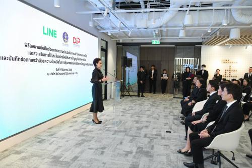 “การลงนาม MOU ในวันนี้ เป็นจุดเริ่มต้นสำคัญในการนำองค์ความรู้ด้านทรัพย์สินทางปัญญาไปสู่ภาคปฏิบัติ ผ่านแพลตฟอร์ม LINE ซึ่งมีผู้ใช้งานเกือบ 60 ล้านบัญชี หากสามารถส่งต่อความรู้ที่มีมาตรฐาน ถูกต้อง และเข้าถึงได้ง่าย จะช่วยสร้างประโยชน์ให้กับผู้ประกอบการและนักสร้างสรรค์ไทยอย่างกว้างขวาง” นางศุภจี กล่าว