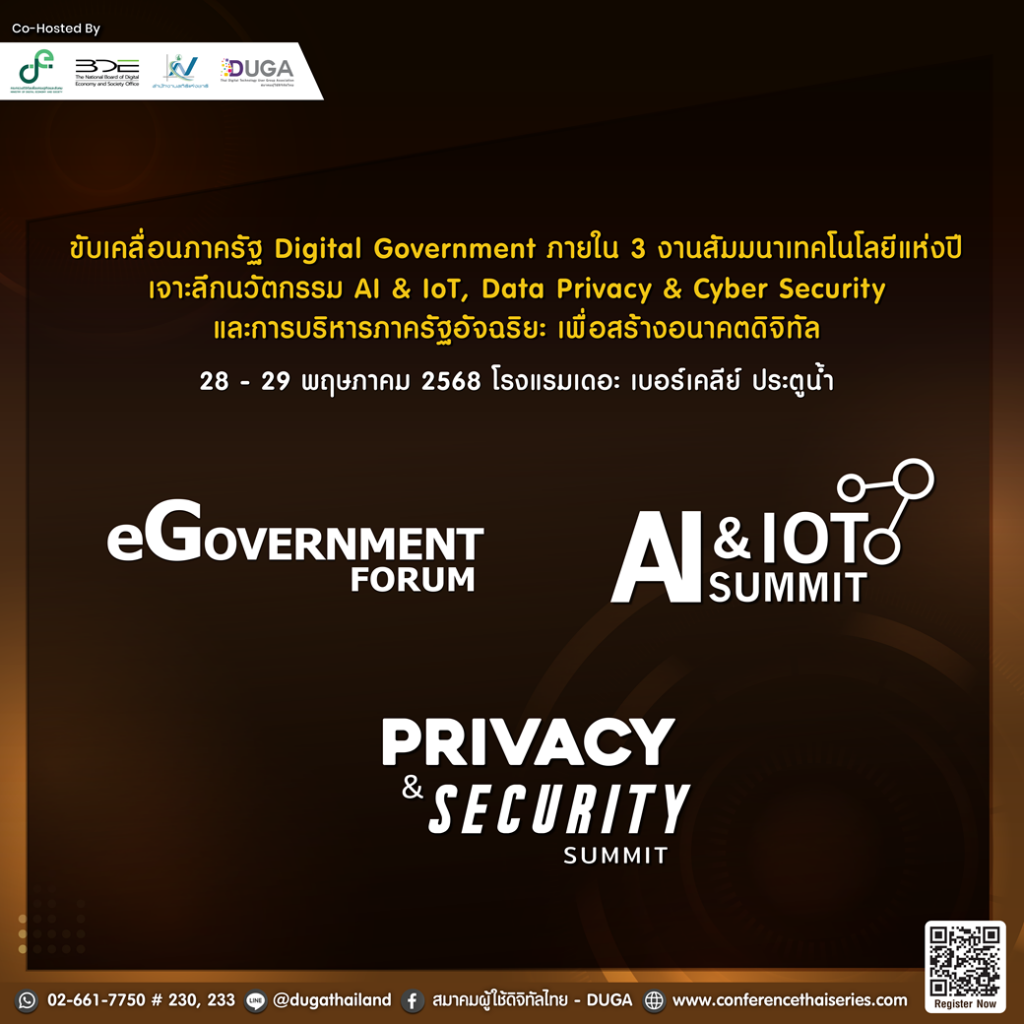 จัดโดย กระทรวงดิจิทัลเพื่อเศรษฐกิจและสังคม (MDES) ร่วมกับสมาคมผู้ใช้ดิจิทัลไทย (DUGA)